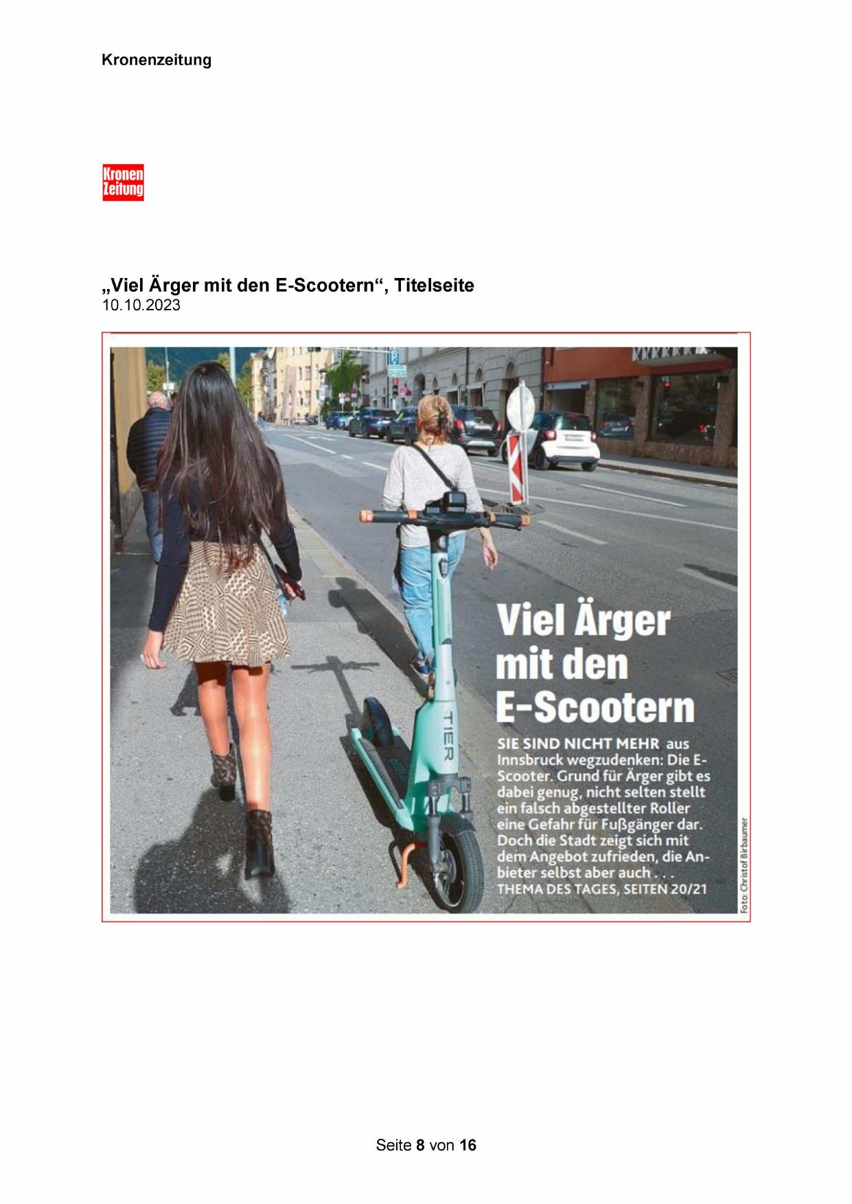„Viel Ärger mit den E-Scootern“, Titelseite