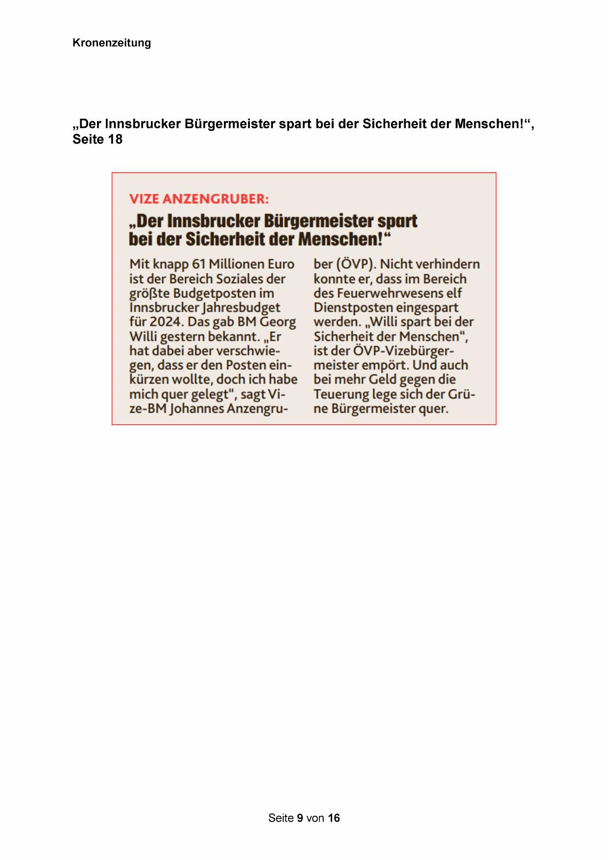 „Der Innsbrucker Bürgermeister spart bei der Sicherheit der Menschen!“,
