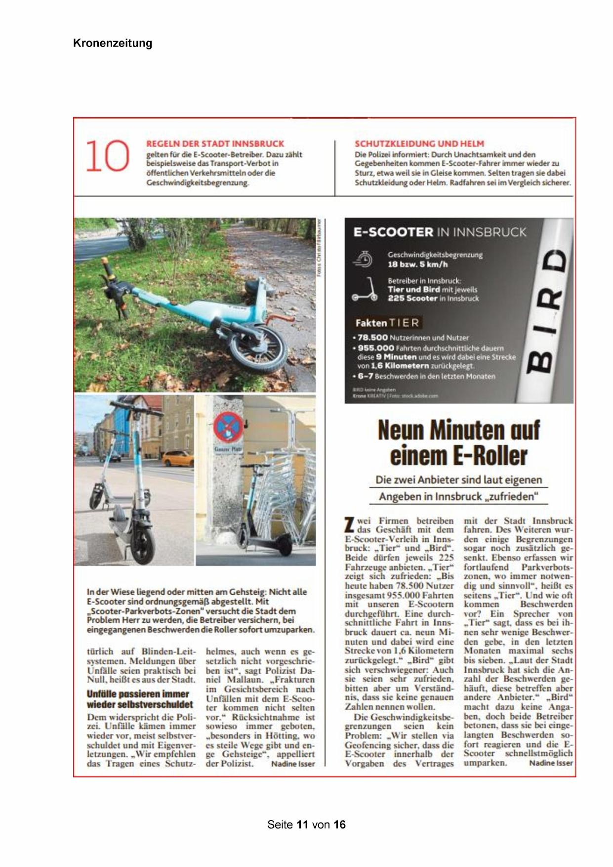 E-Scooter-Verleih in Innsbruck: „Tier” und „Bird“.
