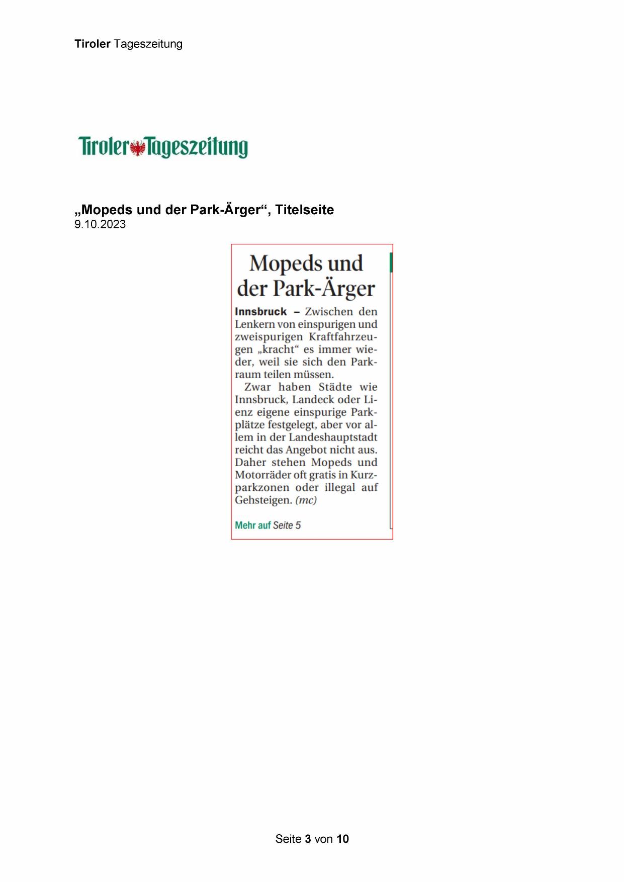 Innsbruck, Landeck oder Lienz eigene einspurige Parkplätze festgelegt, aber vor allem in der Landeshauptstadt