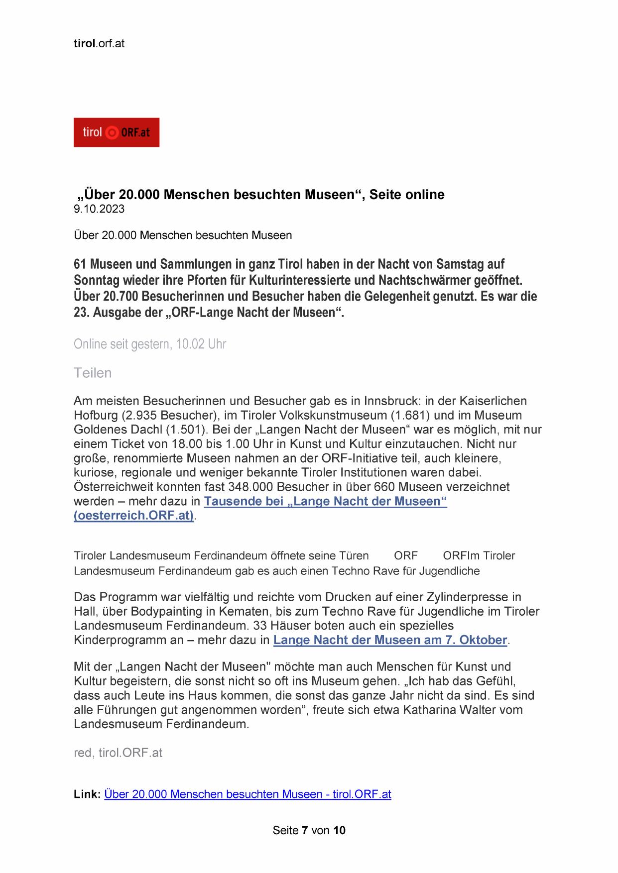 Link: Über 20.000 Menschen besuchten Museen - tirol.ORF..at