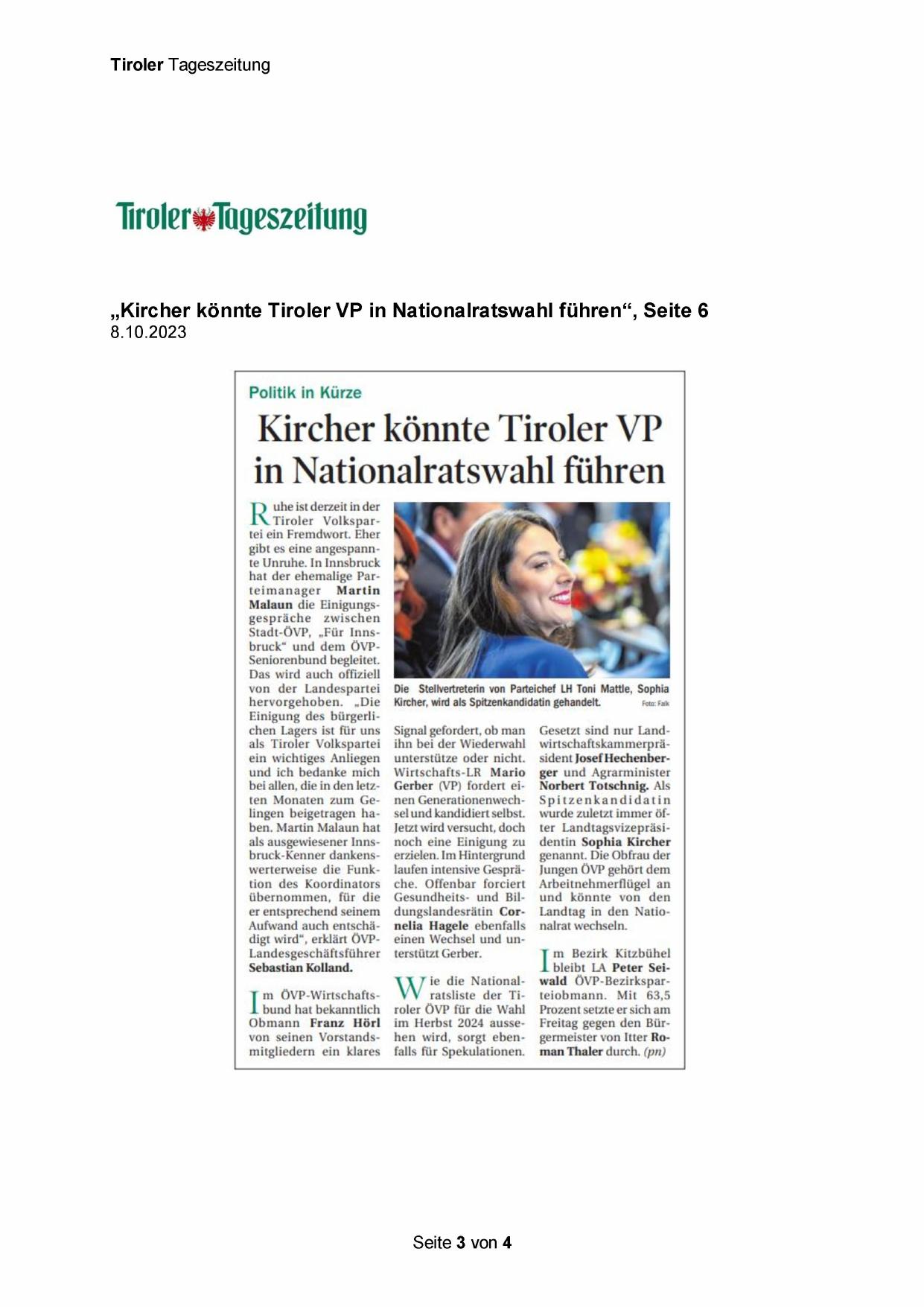 „Kircher könnte Tiroler VP in Nationalratswahl führen“, Seite 6
