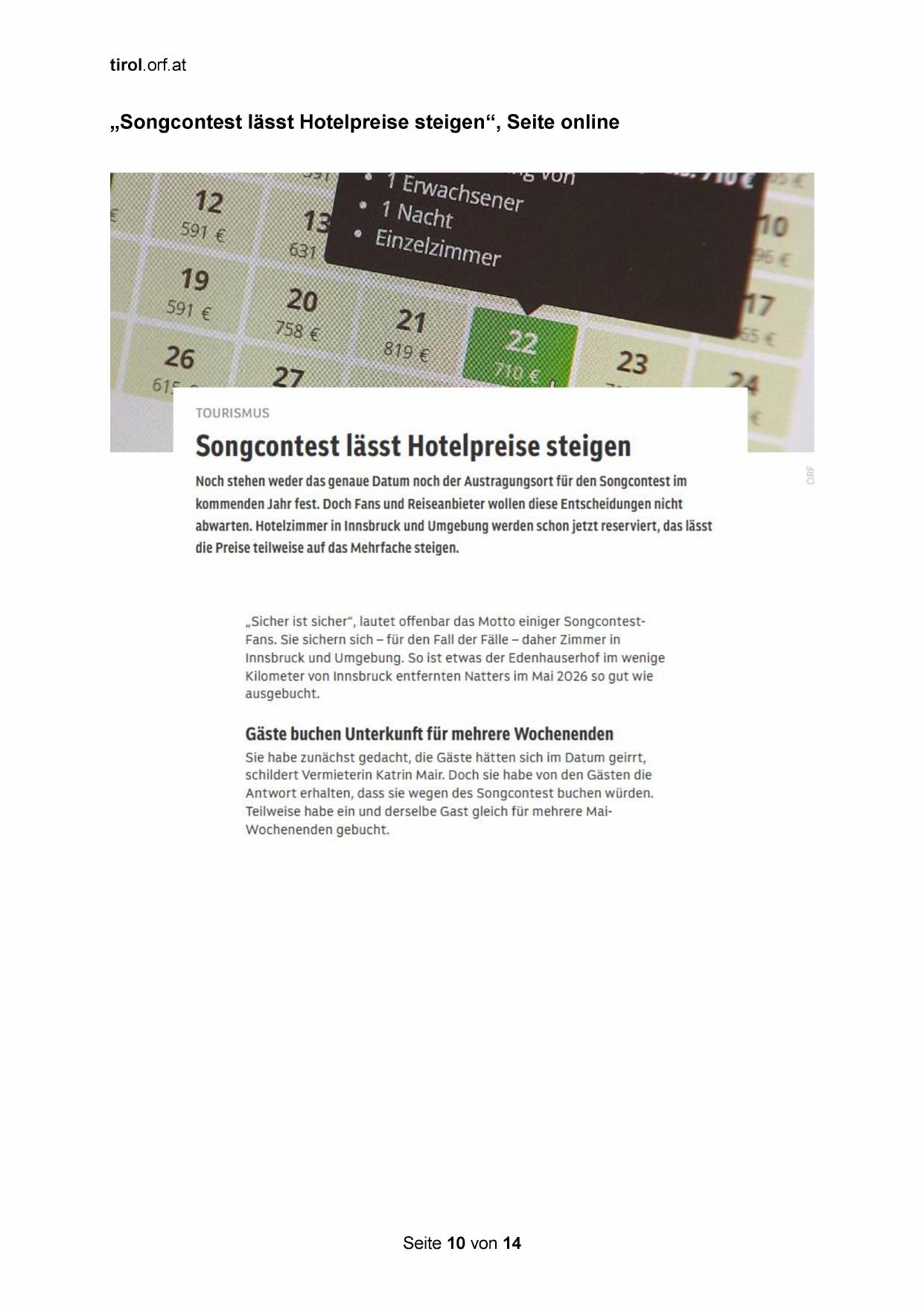 „Songcontest lässt Hotelpreise steigen“, Seite online