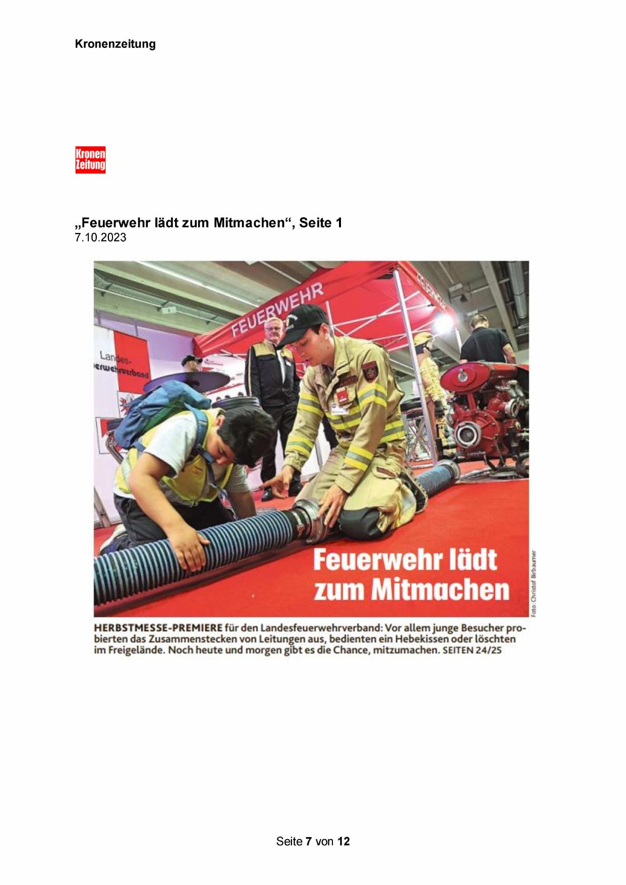 „Feuerwehr lädt zum Mitmachen“, Seite 1
