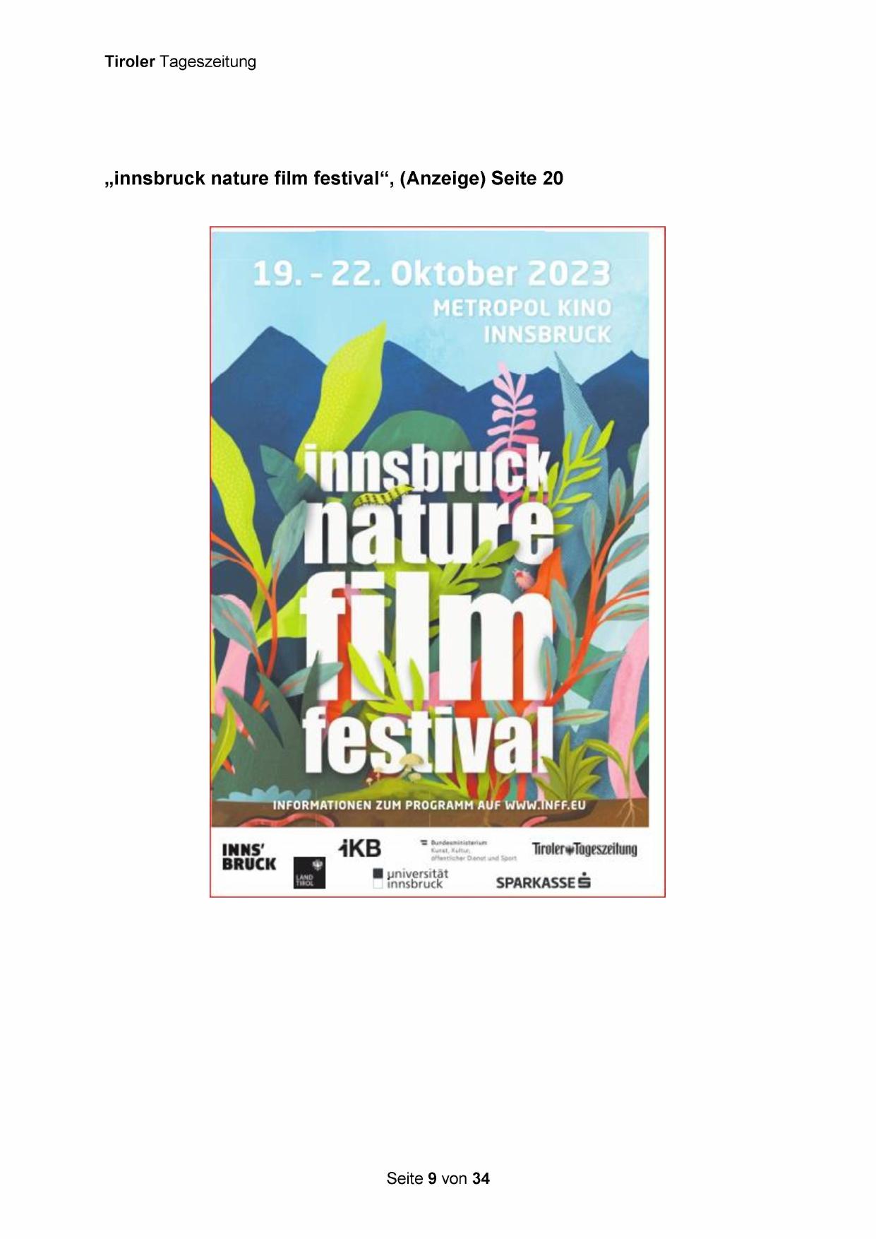 „innsbruck nature film festival‘“, (Anzeige) Seite 20
