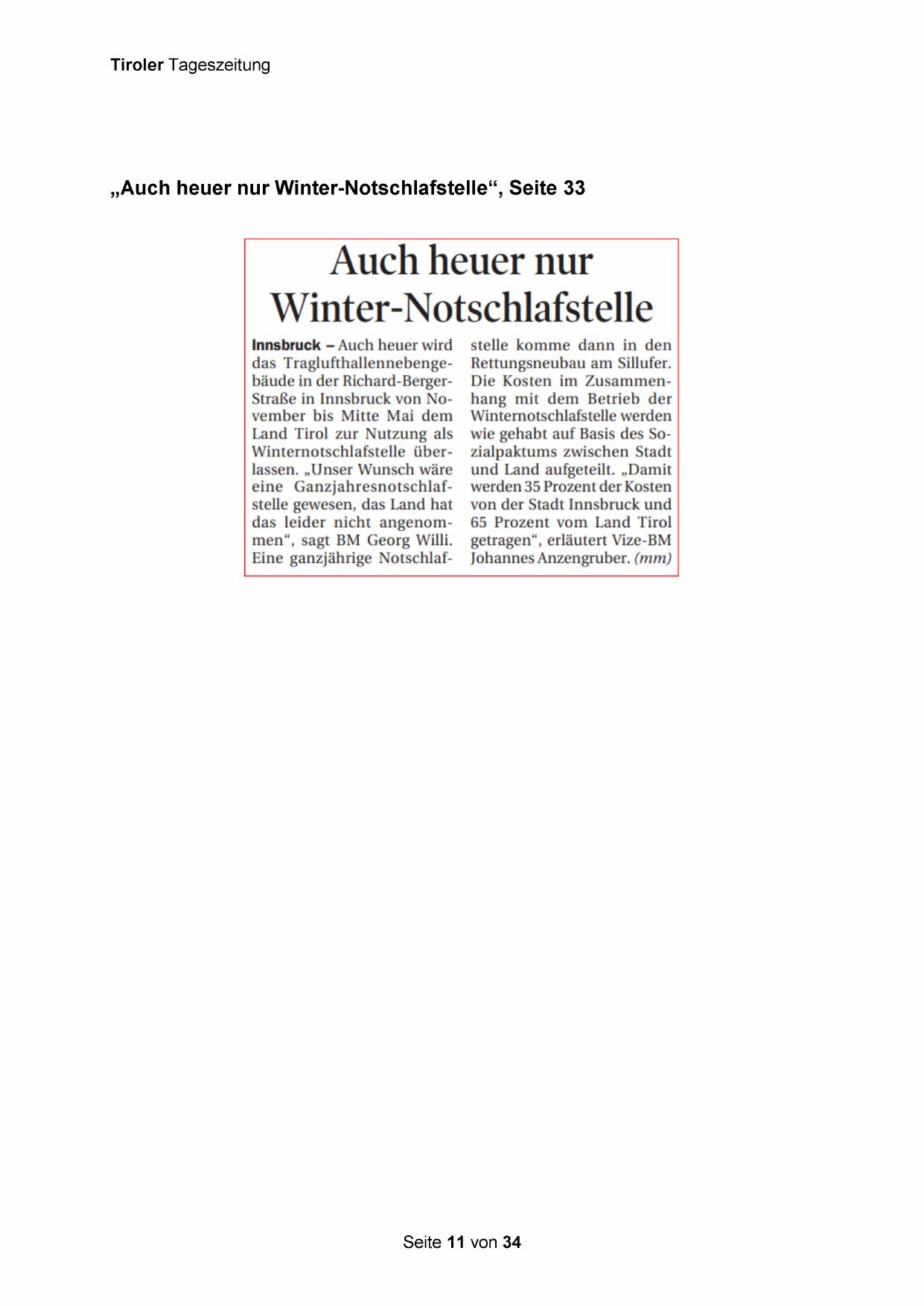 „Auch heuer nur Winter-Notschlafstelle‘, Seite 33