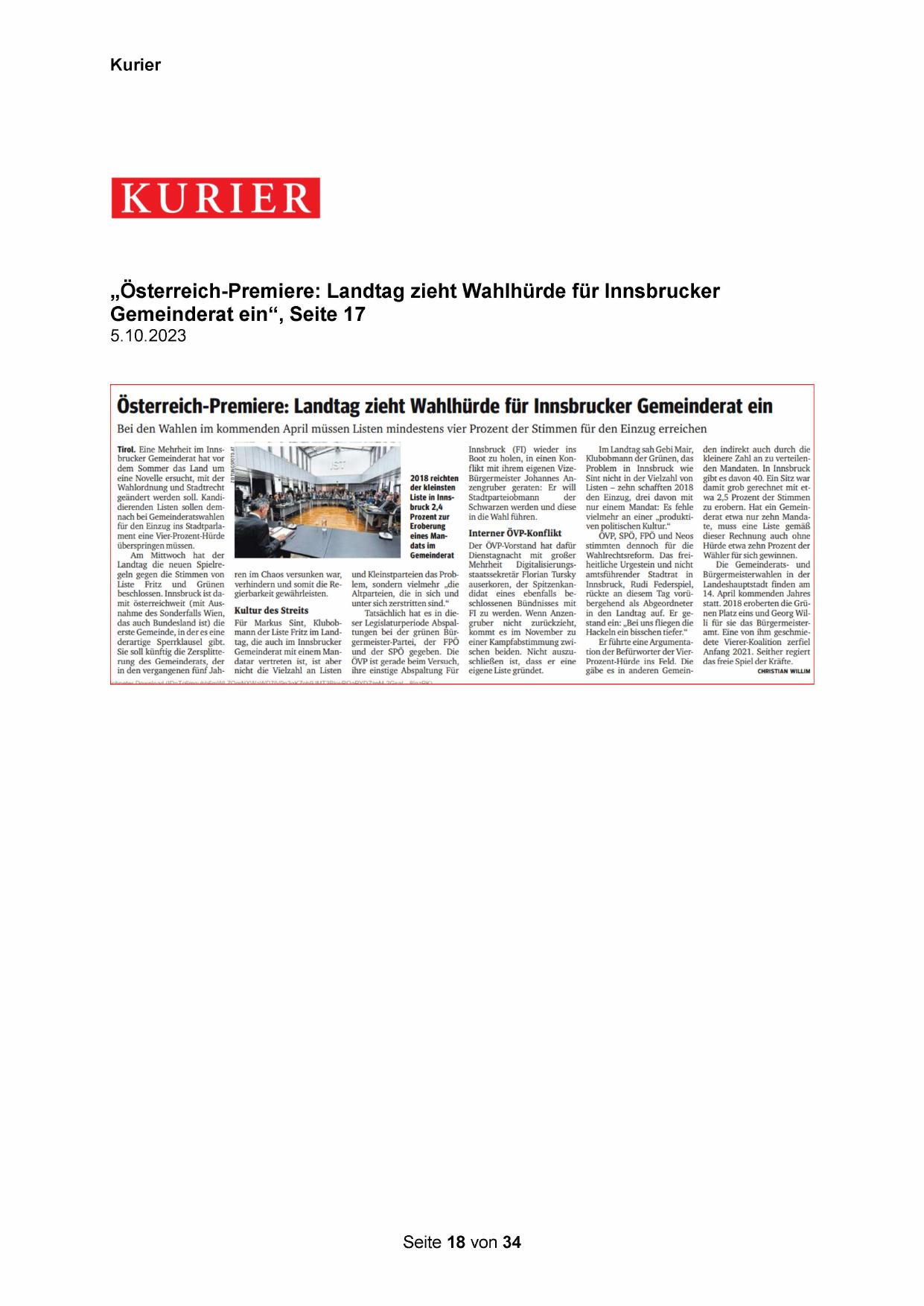 „Österreich-Premiere: Landtag zieht Wahlhürde für Innsbrucker