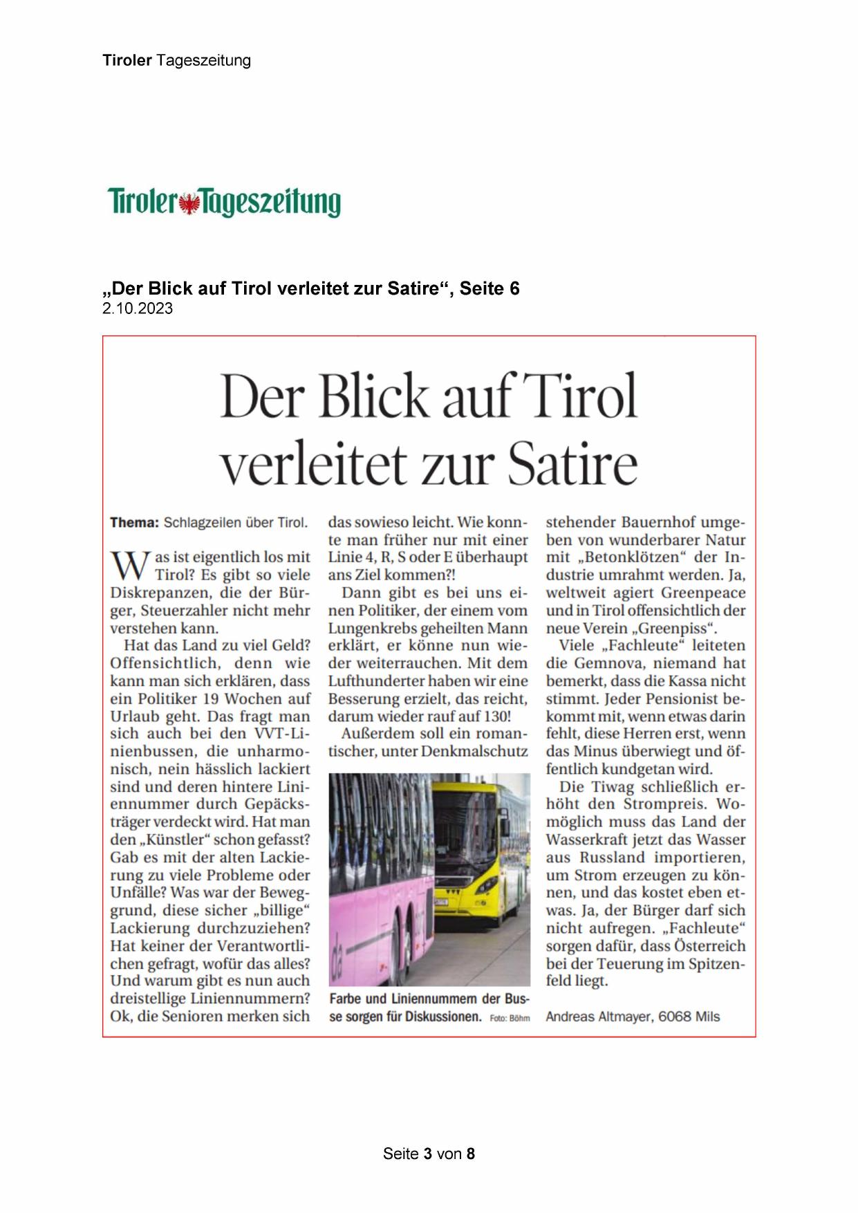 „Der Blick auf Tirol verleitet zur Satire‘“, Seite 6