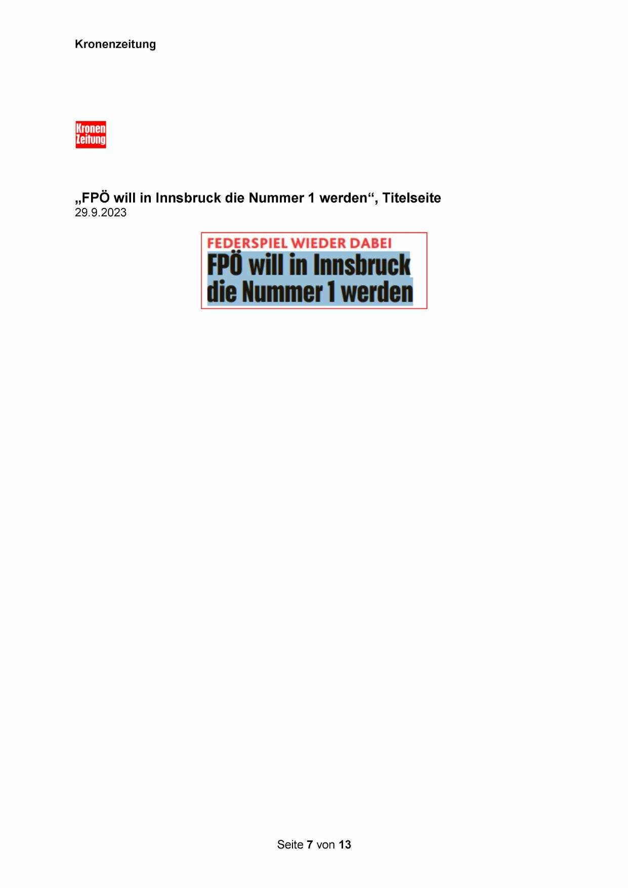 „FPÖ will in Innsbruck die Nummer 1 werden“, Titelseite