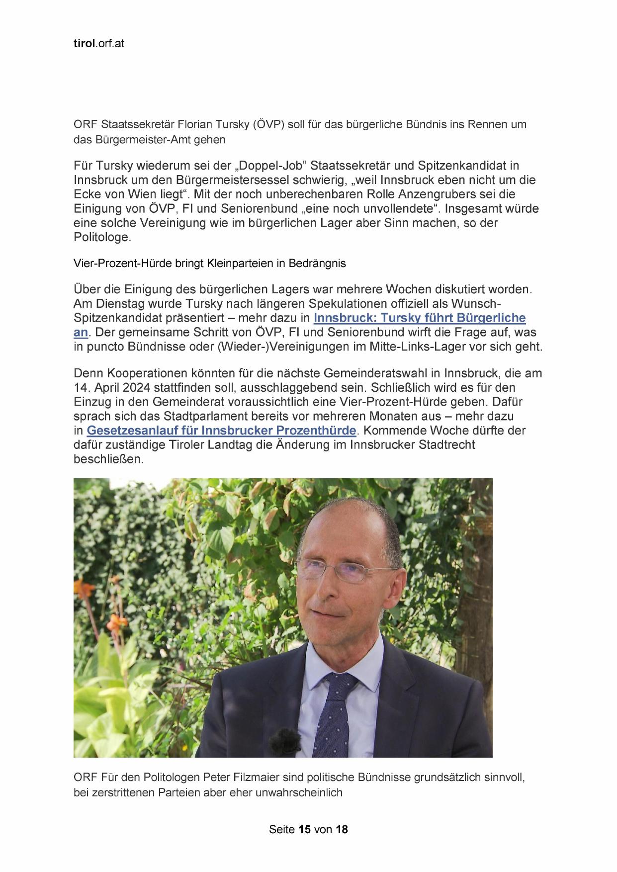 Spitzenkandidat präsentiert — mehr dazu in Innsbruck: Tursky führt Bürgerliche