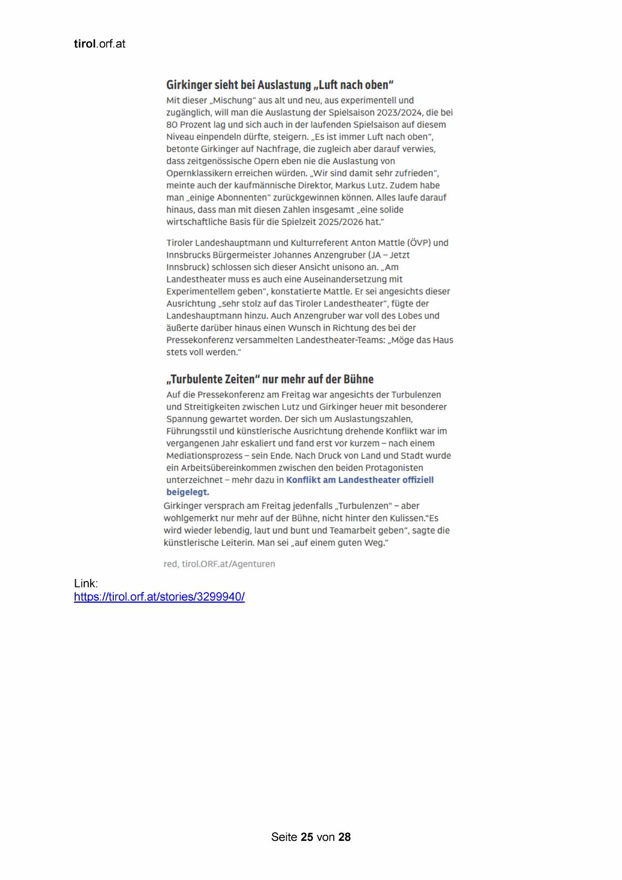 Ausrichtung „sehr stolz auf das Tiroler Landestheater“, fügte der