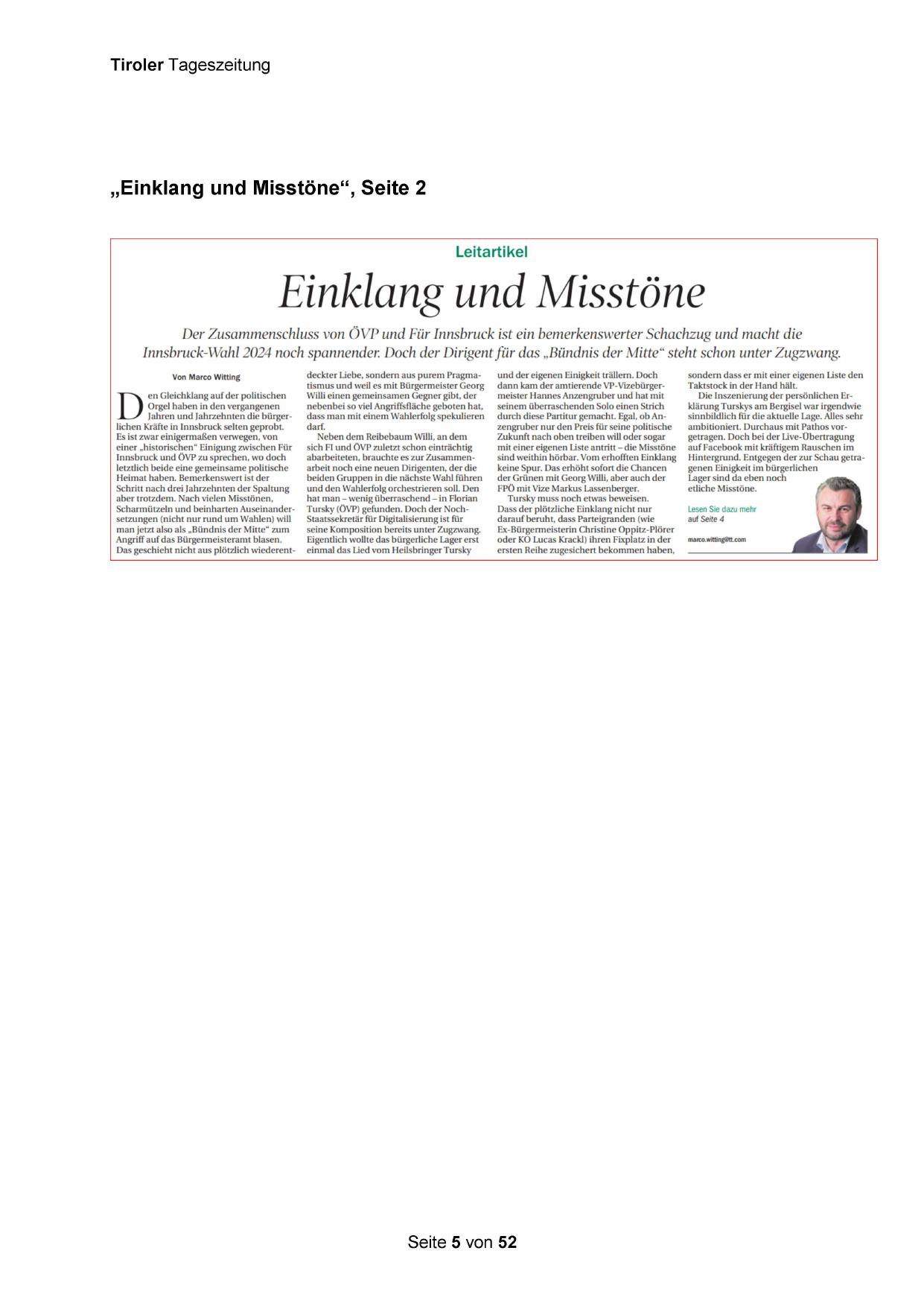Innsbruck-Wahl 2024 noch spannender. Doch der Dirigent für das „Bündnis der Mitte“ steht schon unter Zugzwang.
